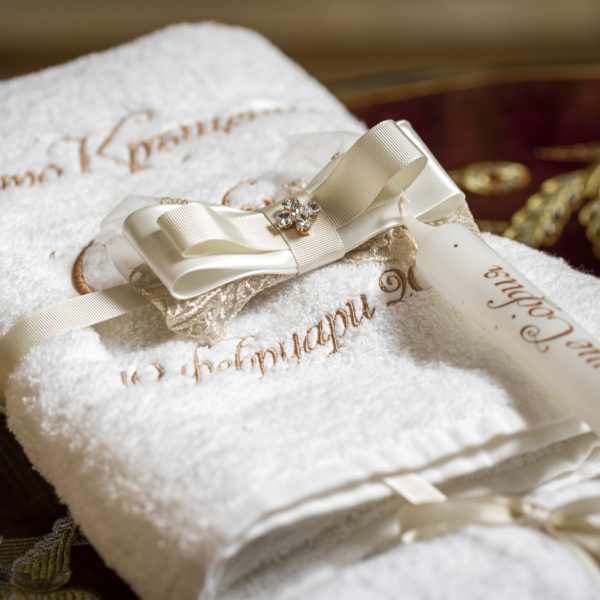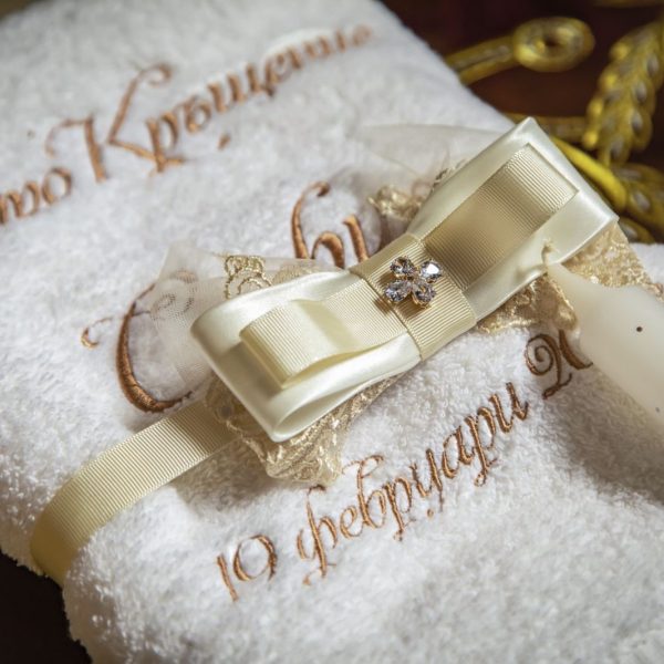 – голяма с размери 70/140 см, бродирани с надпис “Свето Кръщение“, име на кръщелника и дата на кръщенето. Използван е конец в съответния избран цвят. Подбират се меки кърпи от висококачествен памук.