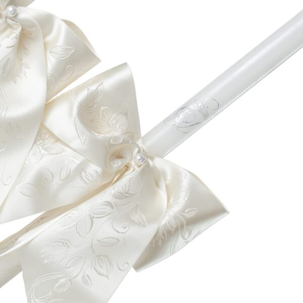 Всяка свещ е изработена с грижа към детайла, за да придаде на Вашата сватбена церемония неповторим блясък и очарование! Включена свързваща панделка от 2 метра, съгласно изискванията на Църквата за провеждането на сватбен ритуал.